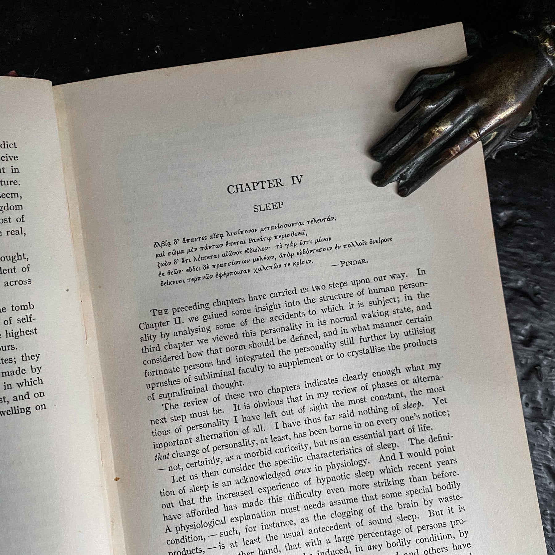 A fascinating volume discussing the author's proof of life after death, including chapters on Genius, Sleep, Hypnotism, Phantasms of the Dead, and Possession.
