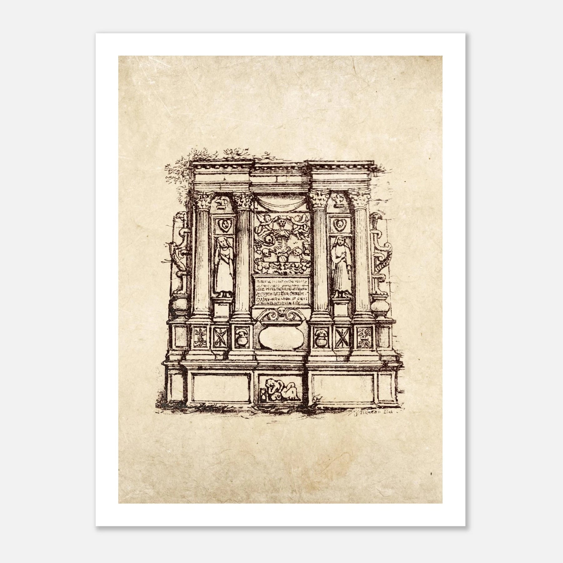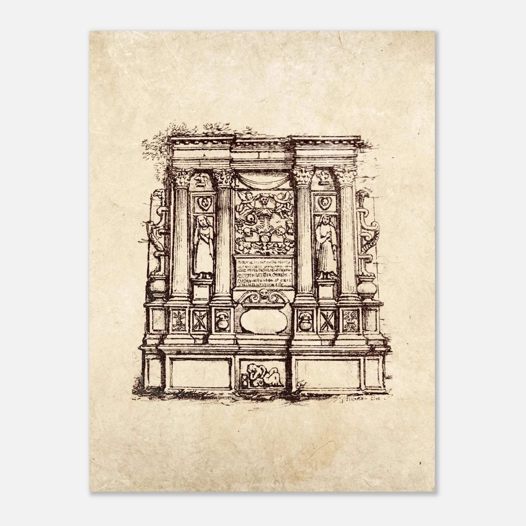 An illustration of the grave of Walter Chieslie, from the book "The Epitaphs and Monumental Inscriptions in Greyfriars Churchyard, Edinburgh. Collected by James Brown. Keeper of the Grounds" c. 1867.