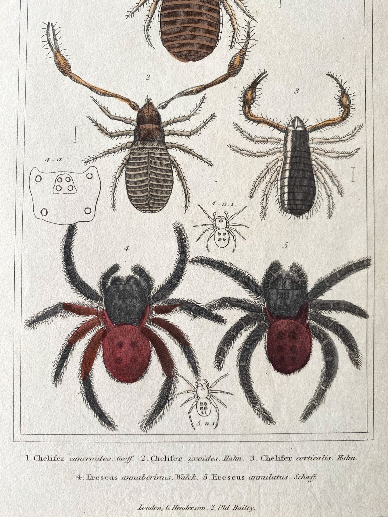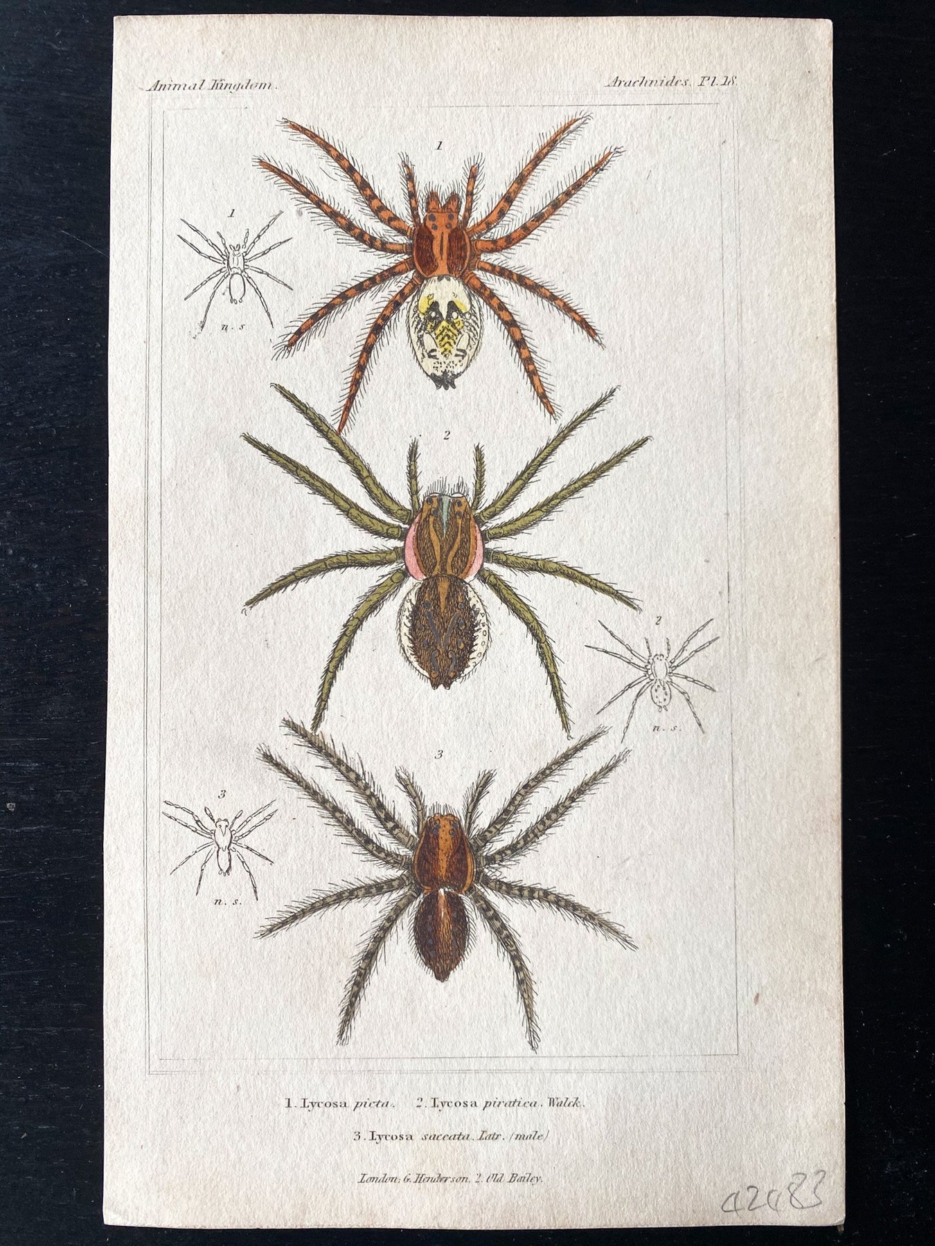 c.1837 Lithographies d'araignées colorées à la main (ensemble 3)